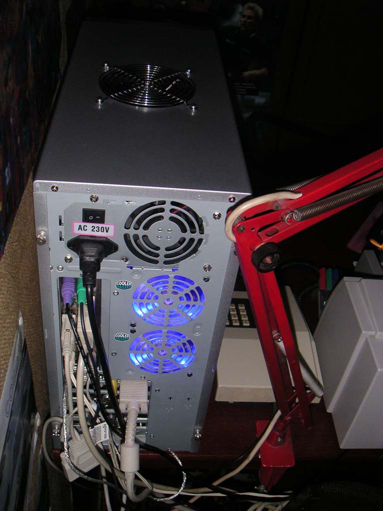 Intel P4 1.8 Mhz ASUS P4S533-E SiS 645DX 2 x 256MB DDR333 Samsung HERCULES ATI Radeon 9800SE AIW 128 MB HDD Seagate Barracuda 60 & 80 GB NEC DVD RW+/-ND-2500 PSU Aopen 300W Monitor EIZO 19" Flexscan Microsoft IntelliMouse Optical CoolerMaster Aerogate II CoolerMaster Cool Drive 3 CoolerMaster 2 x 80mm vent LED Blue Papst 120mm vent SkyStar 2 Case InWin X710 Black |