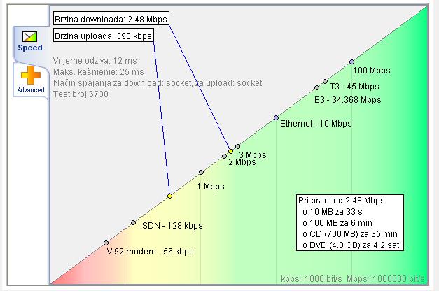 ja ne da imam manje nego iman i uplaod i down vise http://www.speedtest.net/result/200700341.png inace imam iskon duo 2-3 dana , nesto san ima nekih problema download mi je pada stalno i eto ekipa iz tehnicke podrske sve je sredila i sad je sve za 5 , e da jos nesto dok su mi popravljali vezu bia mi je full speed sta veza moze podnit i sa njihovog servere dl.iskon.he mi je skidalo ovoliko ha ha za ne povirovat to je cak teoretski nemogu jer adsl2+ je 24mb po sec a meni je ovoliko skidalo, 4-5 sec 100mb ocito iz razloga sta mi je centrala u podrumu zgrade pa bi mi je veza mogla povuc prvih par sec ovoliku brzinu http://img214.imageshack.us/img214/3452/hahado8.jpg |