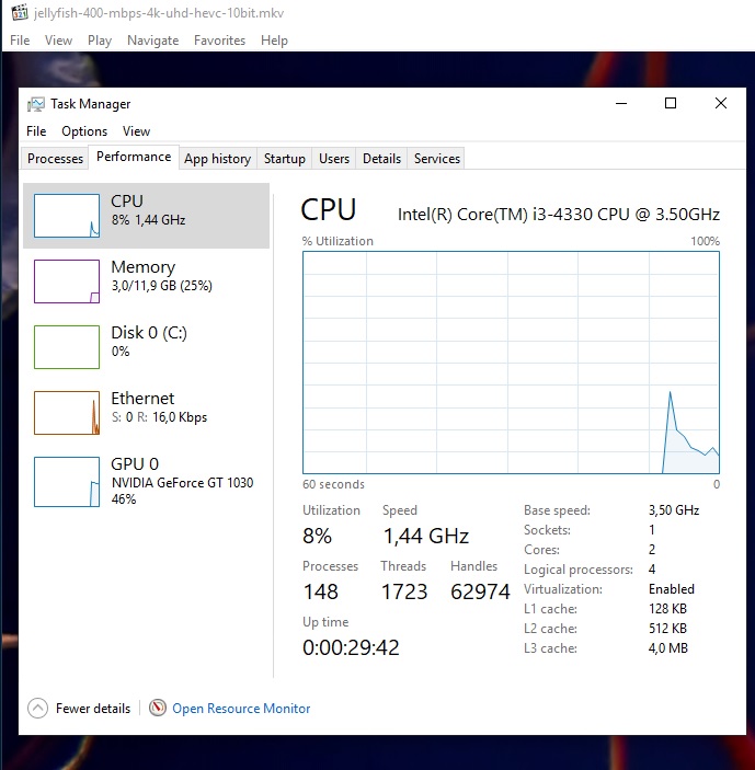 zz s obzirom na more oprečnih informacija online, pitanje za ekipu koja je složila 4k htpc oko gt1030 jel dovoljno jaka za ovo? Format : HEVC Format/Info : High Efficiency Video Coding Format profile : Main 10@L5.1@High HDR format : SMPTE ST 2086, HDR10 compatible Codec ID : V_MPEGH/ISO/HEVC Duration : 1 h 53 min Bit rate : 49.6 Mb/s Width : 3 840 pixels Height : 2 160 pixels Display aspect ratio : 16:9 Frame rate mode : Constant Frame rate : 23.976 (24000/1001) FPS Color space : YUV Chroma subsampling : 4:2:0 (Type 2) Bit depth : 10 bits Bits/(Pixel*Frame) : 0.249 Stream size : 39.4 GiB (89%) Default : Yes Forced : No Color range : Limited Color primaries : BT.2020 FuryX mi nema adekvatni hevc decoder nego forsa preko procesora pa ga prikolje plan je ubacit gt1030 kao sekundarnu grafu samo za 4k telku ili ipak uzet gtx1050? |