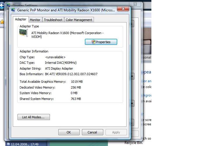 Pozdrav, Imam graficku karticu ati mobility radeon x1600,ona ima 256mb svoje memorije,a ja mislim da moze jos koristi sistemske memorije do 1gb. Problem je u tome sta ja to neznam namistiti,pa ako netko zna neka pomogne. Hvala. |