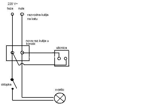 A gdje je ta slika? Ja ne vidim ništa. EDIT: sad ima slike EDIT2: i žarulju i utičnicu može staviti na istu žicu. Da, bolje je da prekidač prekida fazu nego 0.