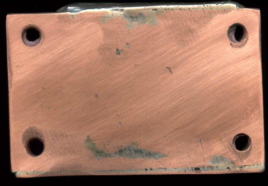 Trenutno mi proc radi na 8x200@1,6v i temperatura dok nisam imao klimu je bila max 43°C ( 5h 100% opterecenje), a ni sada se nije puno smanjila (max 40°C). Sama dodirna povrsina bloka sa procesorom je kod mene katastrofalno obradjena. Rupa ima koliko hoces, a ni sam dizajn bloka nije bas najbolji, a pumpa je neka kitekat 400l/h. Koliko sam ja skuzio, ako hladis vodenim nisu bitni ventovi u kucistu vec ventovi na bloku (imao sam 3 80mm na kucistu i temp. je bila ista) i pumpa. A mislim da bi ti temp bile tek nesto manje jer bi ipak hladio CPU, GPU i NB a sve se to poprilicno grije, ali buka bi nestala. u attachmentu je slika bloka. ![]()