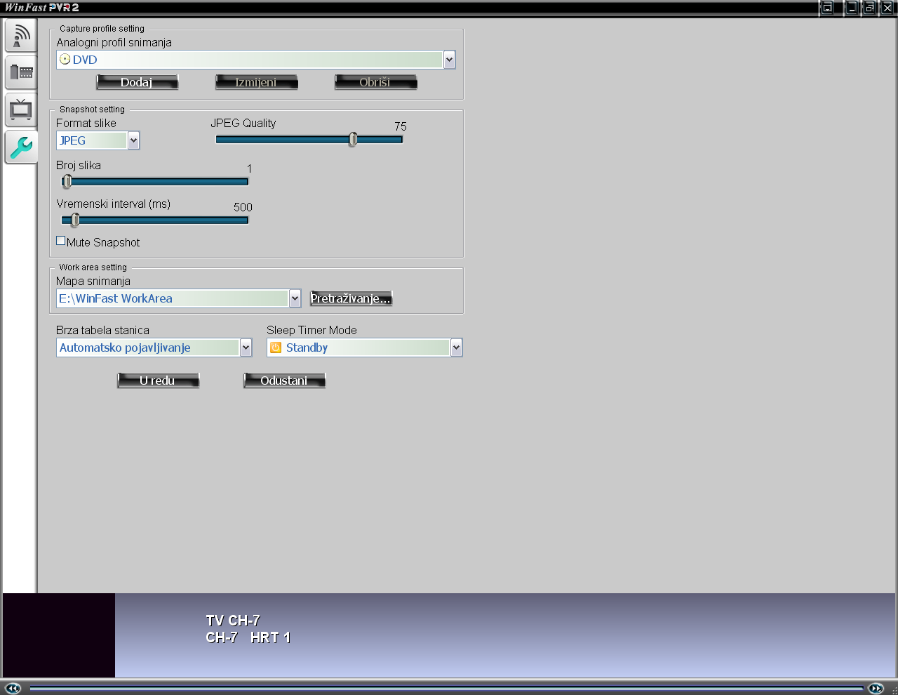 Hajde napravi SS podesavanja TV kartice i poslikaj konektore u koje si ustekao kabal u TV karticu i zvucnu karticu, pa ih postavi ovdje.