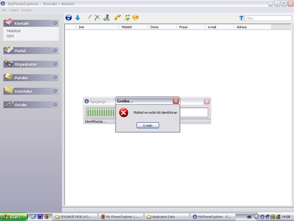 probao... poruka: Mobitel ne moze biti identificiran! :-( |