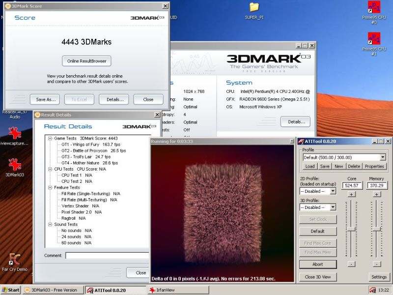 Sto ne pogasis sve iz tray-a i sve nepotrebne procese ukines...pa ok za 9600xt. Mislim da bi slika bila mnogo bolja da si ugasio 3dmark i uslikao cist desktop ![]()