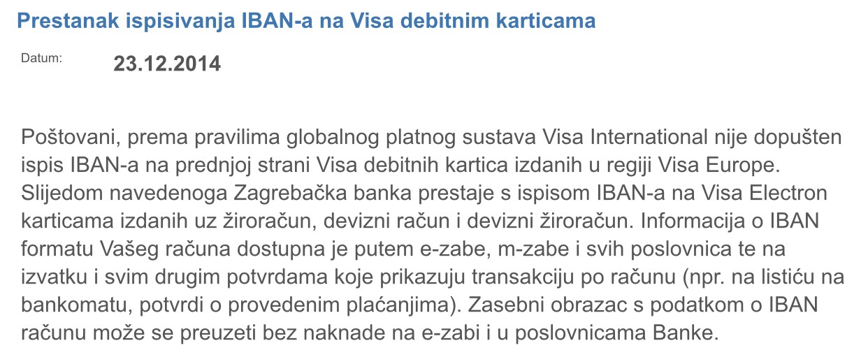 tu ću pitat imam od ZABE visu electron onu ljubičastu, i na njoj mi ne piše dolje IBAN, a šogoru piše, ista kartica i sve meni je iban samo vidljiv na e-zabi, zašto nekom piše nekom ne? ![]()