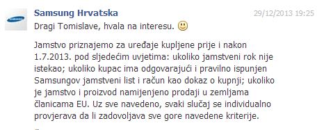Kao sto rekoh,prije 01.07 kako im je dan. Covjek kupio u Telekom Ljubljana u 12/2012,odnio u Zagreb 10/2013 i nisu priznali tj napisali da je rub ostecen iako je bio samo oljusten od koristenja kao i svaki s3. Odnio u ljubljanu,zamijenili mu maticnu. Jel on poseban primjer ne znam. |