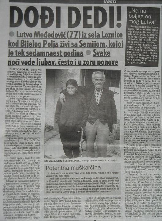 To sam vidio brijem da je bilo na RTL-u(Exkluziv)..ali treba bas nije svoja nije htjela ni pricat ni nista,a deda se hvali ![]() Otisla je kod njega zivjeti jer je ona uzasno siromasna i nemogu je doma uzdrzavat,pa je morala kod njega otici jer su je roditelji dali (barem brijem da je tako bilo...nešto takvo su rekli na tv-u!!) Uglavnom tužna priča!!