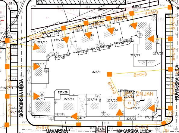 Uloga šahti je da se kroz njih po potrebi mogu mijenjati podzemni kabeli, ispod njih je kabelska kanalizacija (cijevi kroz koje prolaze kabeli) a u nekim šahtama su i spojnice (mjesto spajanja kabela). Nekada kroz šahtu pa u spojnicu zna ući voda pa dobiješ npr da susjedna zgrada ima 16db atenuaciju a moja 22db. Upravo radi oštećenja kabela ispod šahte. Kabel može biti bilo kakav, većinom bakreni. Osim šahti gdje postoji kabelska kanalizacija negdje se u prošlosti kabel samo ukopavao u zemlju (kao kod naše zgrade) i tada na podu imaš PTT oznake; ![]() Ako samo jedna zgrada ima optičku dostupnost vjerojatno je tamo bilo jednostavno za provući/postaviti ili je bilo više zainteresiranih stanara odnosno dobar predsjednik zgrade.