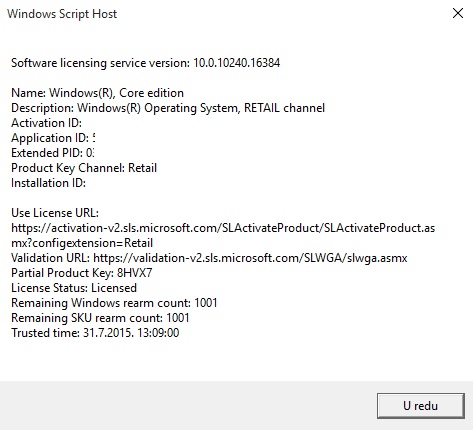 Ponavljam, Microsoft mi je na telefon rekao da nakon godinu dana ako rikne ploča da gubim W10. Pa zato misim da bi bilo dobro izvući dobiveni Product Key i onda napraviti tel. autorizaciju ako dođe do toga, odnosno pokušati. Iako MS na tel tvrdi da nije moguće izvuči ProductKey, jer je on "digitalno" dodjeljen na MS Serveru što sumnjam da nije moguće.