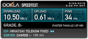 Kod HT a je uvjek bila brzina 4,50 kod ovih je 3,60 ako bude 3,92 mbit/s to je uspjeh.Zna bit i ispod 1 Mbit/s ,ja neznam do čega je to sad sam sve kablove zamjenio to baš ništa nemjenja situaciju, |