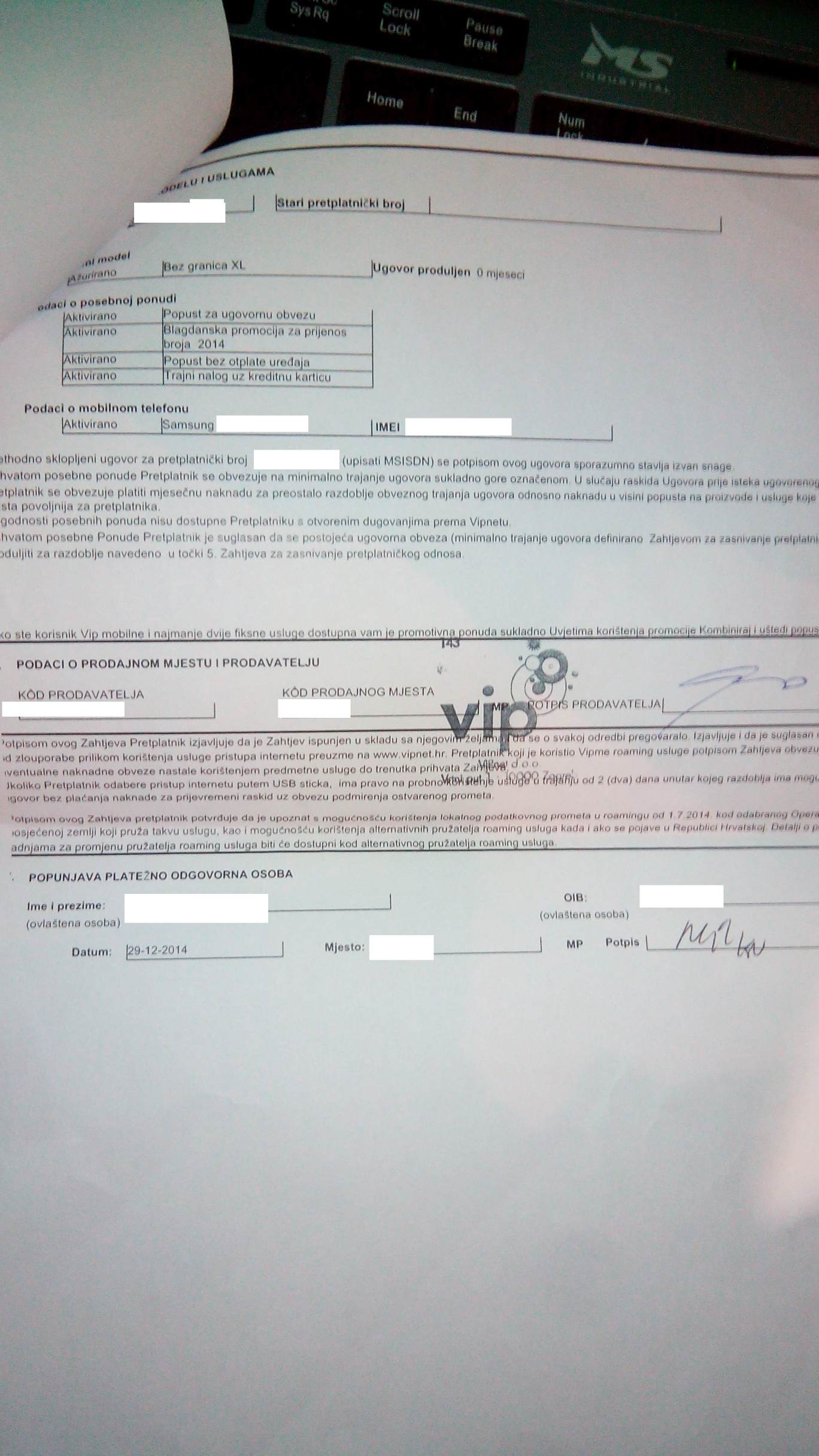 Pozdrav Imam pitanje, prenosio sam broj u vip i uzimao mobitel u nekoj akciji. Prilikom potpisivanja ugovora prvo sam potpisao za xl tarifu i trajanje ugovora je bilo 0 mjeseci, a kada mi je odobren prijenos greskom su mi u drugom ugovoru napisali da se prvi ponistava i zbog mobitela da se trajanje produzuje za dodatnih 0 mjeseci. Pravno to bi znacilo da sam ja slobodan otici bez penala , ili se varam? evo ugovora, prvi i drugi Molio bih bez moraliziranja |