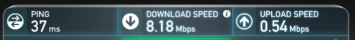 Trenutno imam 7, toliko realno ostvarujem, eventualno 7.7mbit - sa ovom brzinom. |