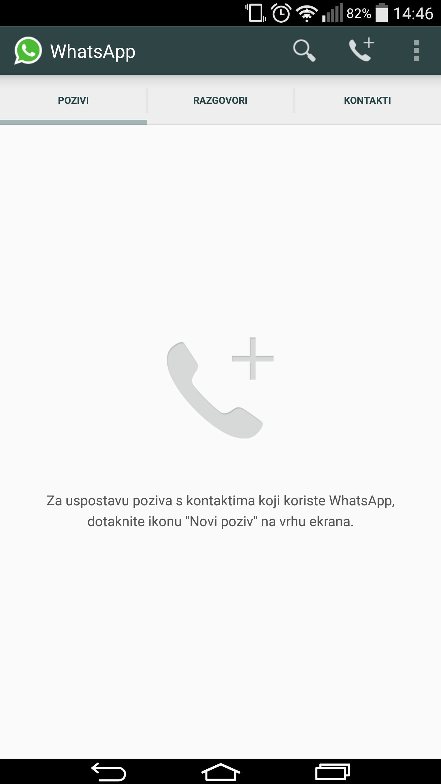 Upravo obavio prvi poziv preko WhatsAppa. Sad se službeno može zvati valjda preko svake aplikacije ![]() Ovako izgleda aplikacija sada |
