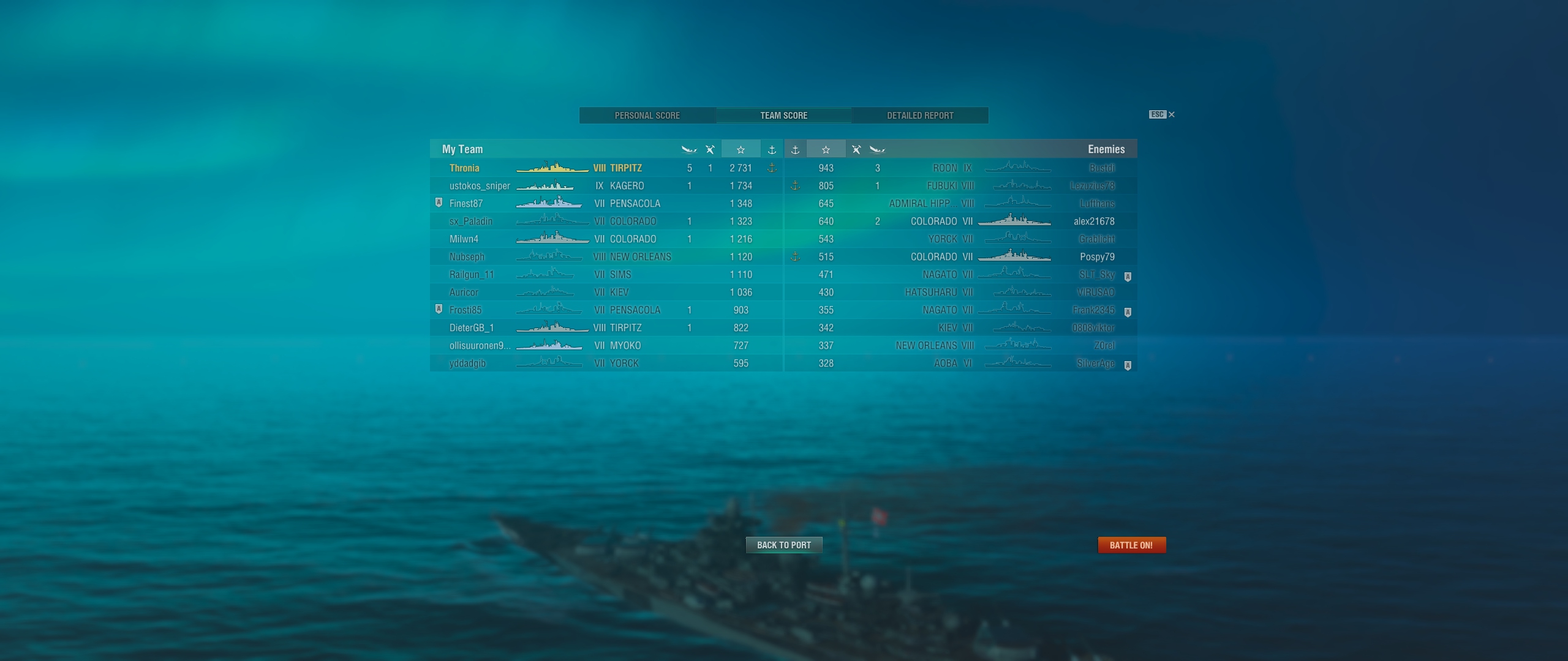 Odlična bitka sa North Carolinom. Timski rad do jaja koju sam imao sa 3xCA. Skinuo ih 6 komada, skinuo sa jednom salvom full HP Atlantu, a kasnije malo načetog ARP Myoko-a isto iz prve koji je htio Cap-ati bazu Za kraj, bliska borba sa protivničkom NC-om koju su završili moje sekundarni topovi jer mi nije htio imalo pokazat bok unutar 5km kod zadnje salve - mislim da se je išel zabit u mene ![]()