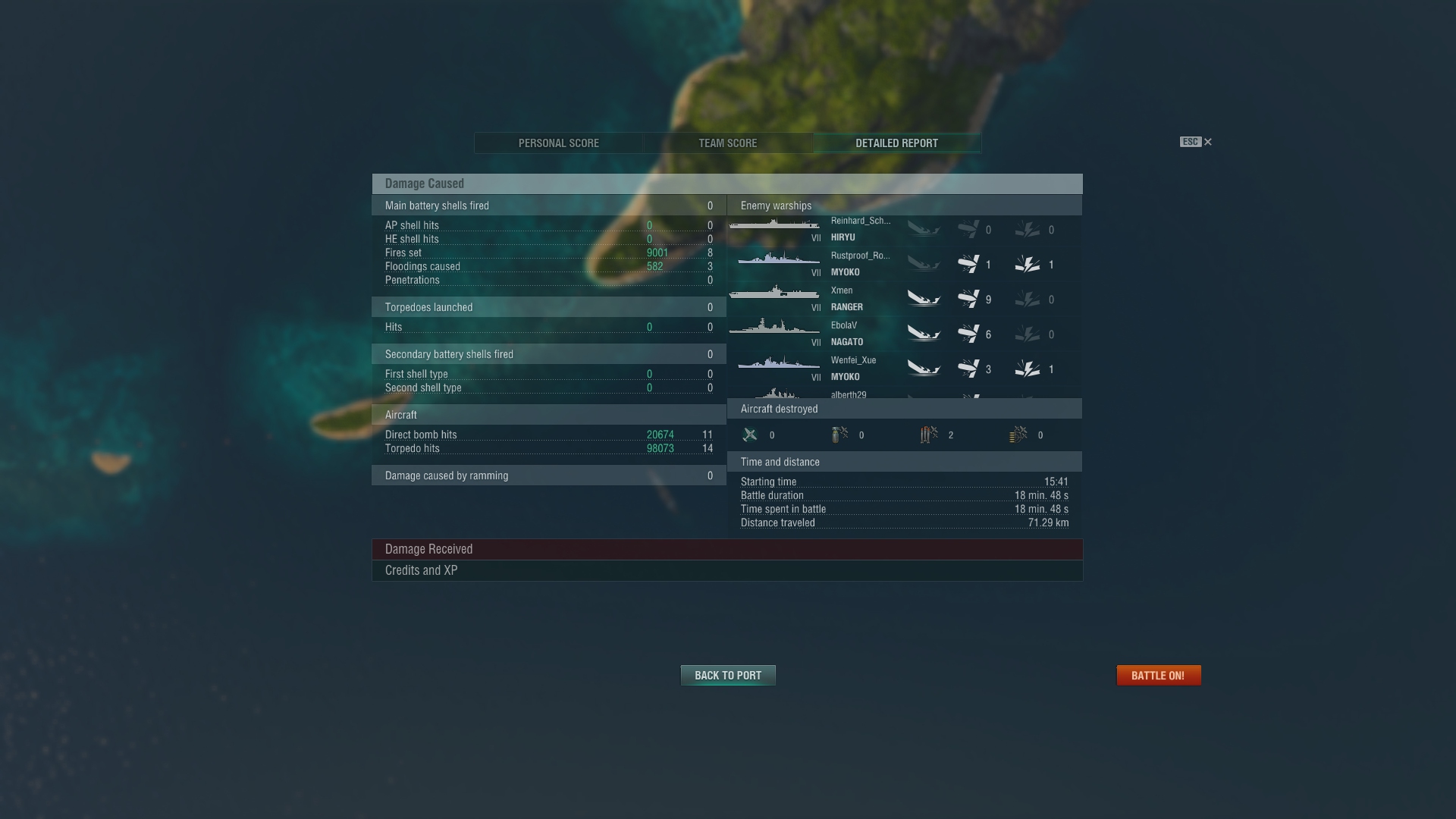 Odlična bitka sa North Carolinom. Timski rad do jaja koju sam imao sa 3xCA. Skinuo ih 6 komada, skinuo sa jednom salvom full HP Atlantu, a kasnije malo načetog ARP Myoko-a isto iz prve koji je htio Cap-ati bazu Za kraj, bliska borba sa protivničkom NC-om koju su završili moje sekundarni topovi jer mi nije htio imalo pokazat bok unutar 5km kod zadnje salve - mislim da se je išel zabit u mene ![]()