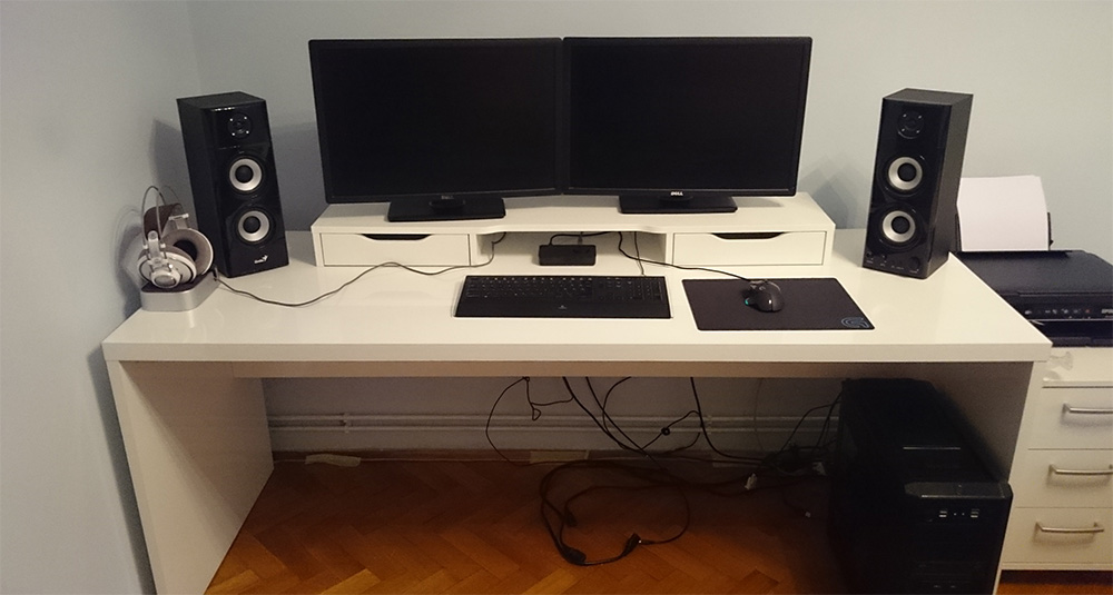 Malo sam updejtao radni stolić. Nadogradio sam ga ALEX konzolom iz Ikee i strpao kantu pod stol. Iza sam još prišarafio onu kanalicu za kablove i sada je pic-pic. Nažalost, nisam poslikao kada sam završio... ![]() |
