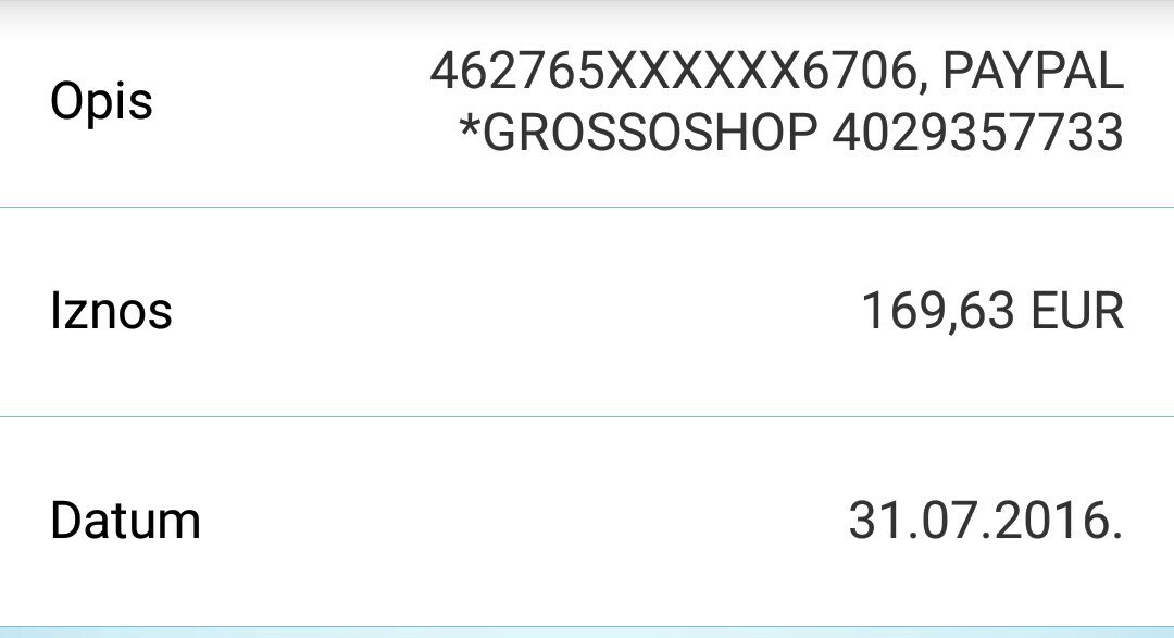U mene je sve ok samo je nesto izmedju banke i paypal-a naplacena neka konverzija. Ali san cua da inace Visa ima nepovoljnije uvjete. A kod tebe je nesto malo zesce zahebato i u tebe su radjene razne konverzije, sta kod mene nije slucaj. Pogledaj i postavke na paypal u kojoj ti je valuti i vidi u kojoj ti je valuti devizni. mozda radis 3-4 konverzije ![]() |