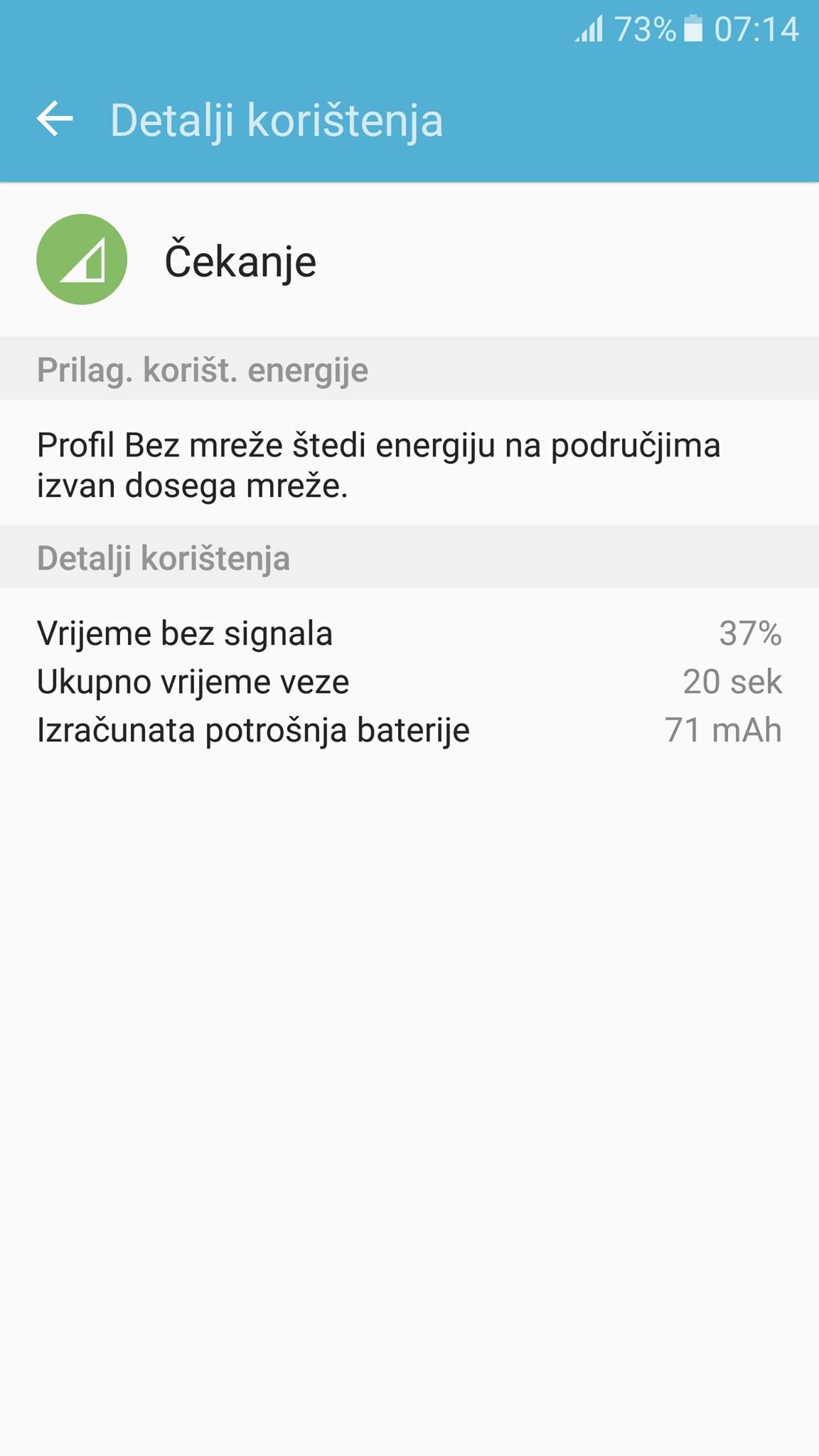 Može mala pomoć, već par dana mi je UŽASNO loš signal na S7, pogotovo noću, popije mi preko 15% baterije u mirovanju. Stavio sam i sliku, 37% vremena bez signala. Probal sam SIM piknuti u stari razbijeni S4 i odmah je bilo full, dok na S7 najčešće je na 3 crtice. S disejblerom nisam ništa zadnjih dana disejblao, tak da ne vjerujem da je od toga, tj. da bi nešto ključno ugasio. Jednostavno je kroz tjedan počeo zafrkavati, a ovo nočno papanje baterije je kulminacija. Svaka sugestija je dobro došla ![]() NAPOMENA: Područje "selendre" je dobro inače pokriveno, na 4G imam također 3 crtice, ali ja koristim "automatski 2G/3G" (ne trebam 4G).. |