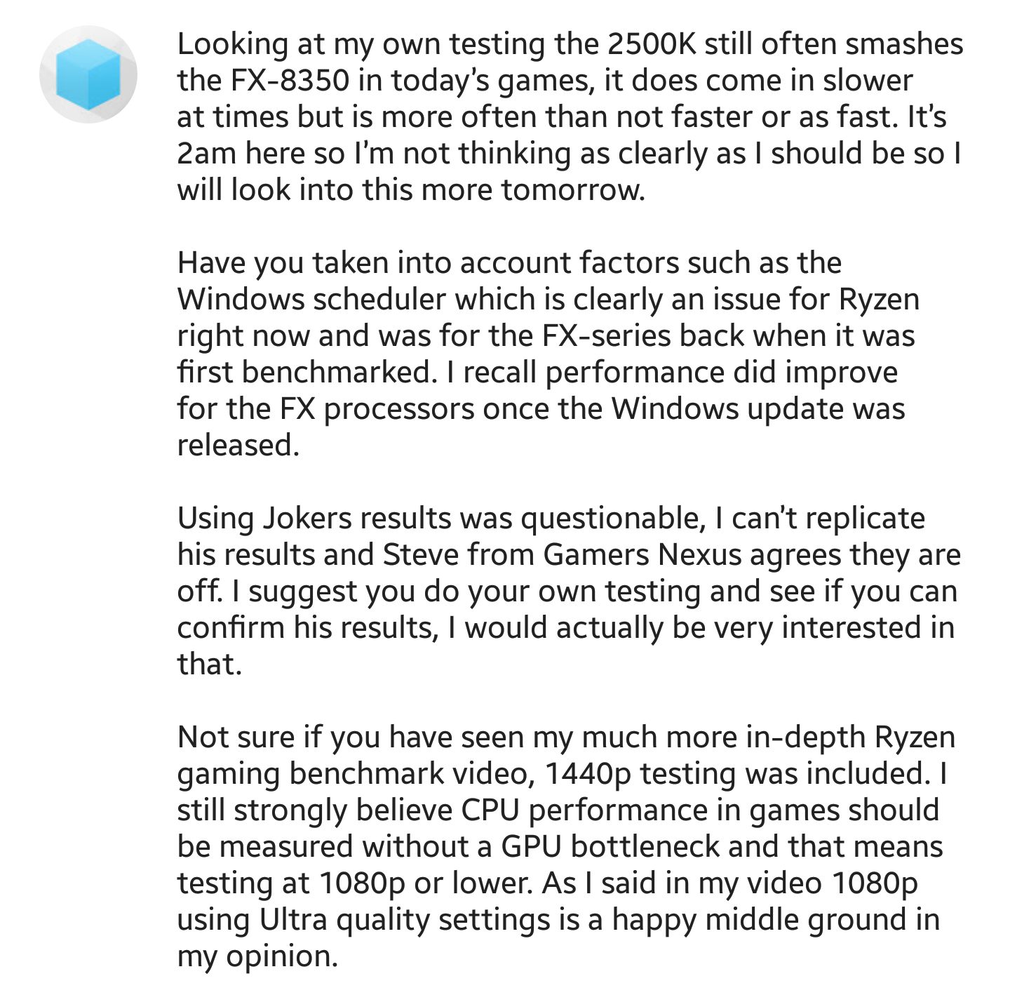 Kako je onda 2600K dobar za gaming a Ryzen nije i samim time nije upgrade sa 2600K??? I još uzmemo u obzir da Ryzen bude dozrio, dok 2600K je odavno na ledu?