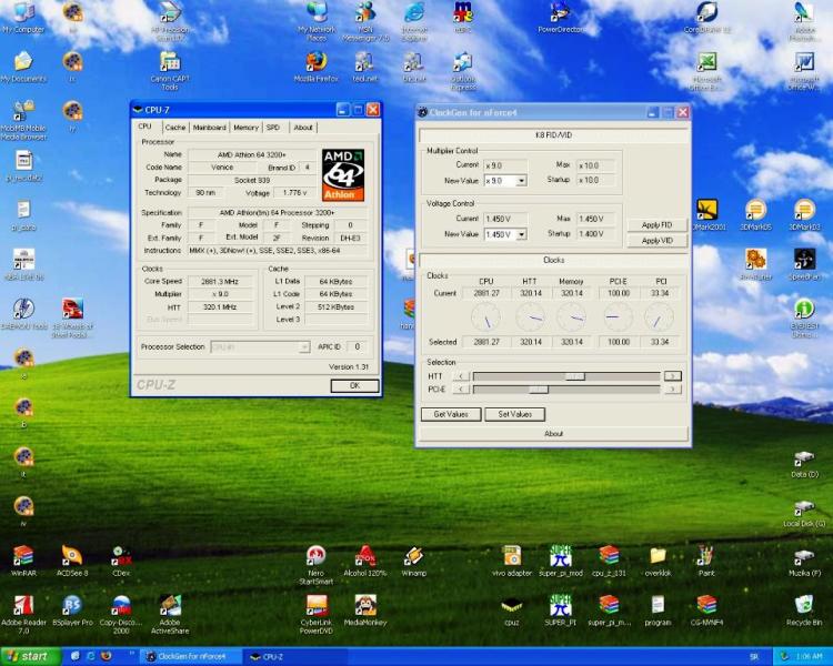 evo od mene rezultat memorija 1/1 sa 2.9V cpu:1.550+136% npon LDT i chipseta nisam podizao da li bi jos mogao izvuci za procesor da sam podigao LDT napon i chipset napon?