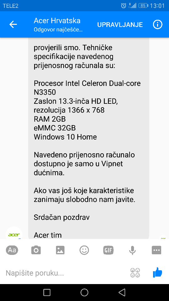 Da nakon istrazivanja skuzila sam da ima vise vrsta tog modelalaptopa, vip na svojim nije naveo tocne specifikacije, kad sam ih zvala nemaju pojma ni da ga imaju i onda nakon cekanja na vezi skuze da imaju ali neznaju model pa opet cekam da bi mi rekli ono sto sam i sama vidjela na njihovoj stranici..odlucila sam u pon otici u centar i vidjet o kojem se modelu tocno radi..