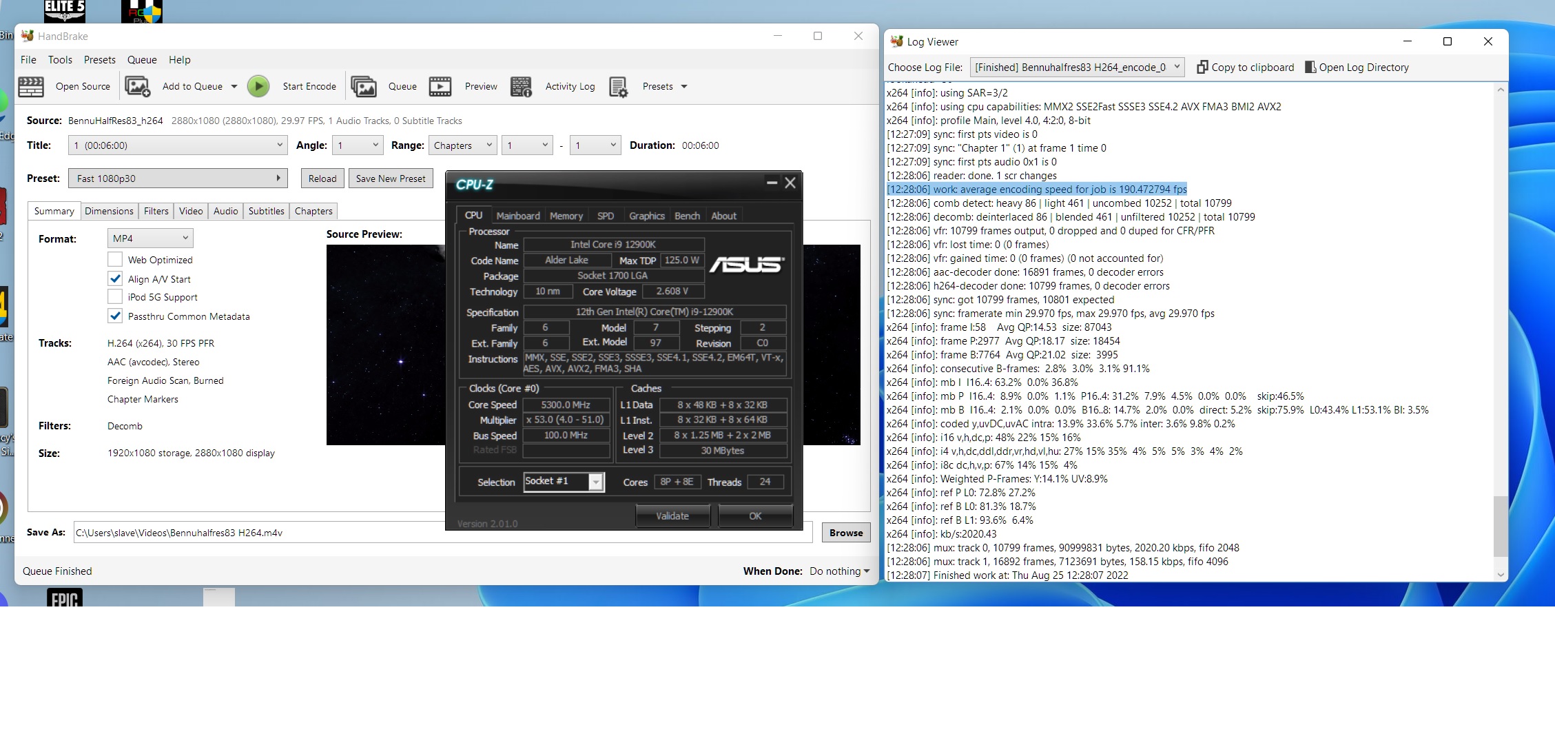 Kad je kolega bumpao ovaj stari thread, odlučio sam i ja odvrtiti Handbrake na svom 5600x ![]() Ryzen R5 5600X @ PBO + Auto OC / DDR4 @ 3733Mhz - Avg FPS = 98.839 FPS Samo za usporedbu, grafa (3060ti) to odradi dosta brže naravno - Avg FPS = 205.609 FPS Zadnje izmijenjeno od: Sn4k3. 14.08.2022. u 17:18. |