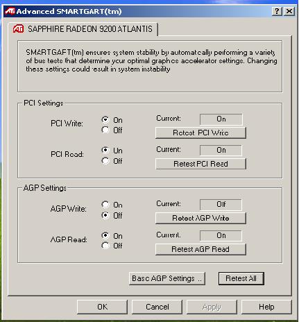 postavi na ON a onda stisni retest AGP write i radi da ga he*es - i mene je na staroj kanti od sestre to zahe*avalo |