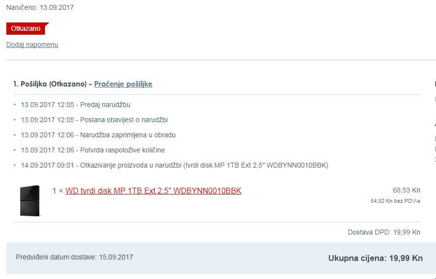 Dakle, vidim da su mi teretili karticu, poslali su mi račun i zapravo je time zaključena transakcija i moraju poslati artikl.