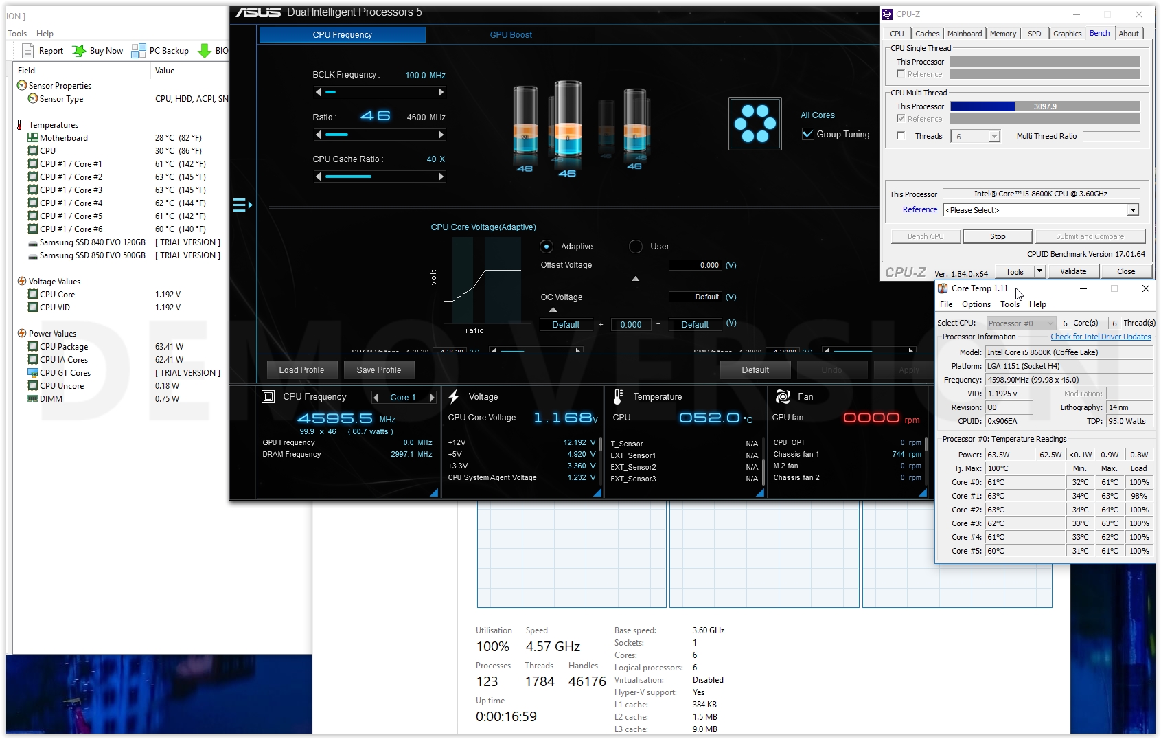 4600MHz, 1.168v, stavil na 46 i apply, onak bezveze da vidim kak to ide sve.. Temp.63c, nakon par minuta.. S tim da u kućištu samo dva venta rade na Noctui na laganih 500 okretaja, ostale ventove još nisam pospojio.. Ne da mi se po biosu čačkat, pa reko idem probat iz winsa.. EDIT: 4800MHz, 1.168v Zadnje izmijenjeno od: zvonac. 17.04.2018. u 12:00. |