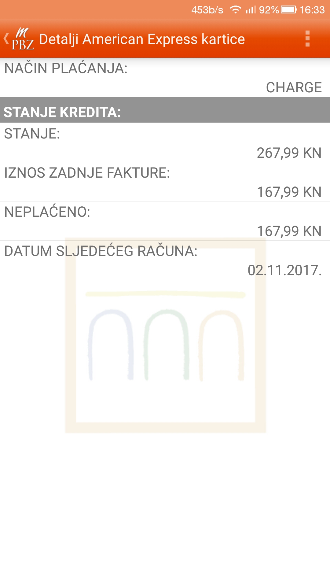 Moze mi netko objasniti kako ovo funkcionira,imam placanje preko AmericanExpress svaki mjesec oko 110 kn ( auto osiguranje na 12 mjeseci ) i pretprosli mjesec sam si uplatio tocan iznos fakture da mi povuce sa AE kartice za placanje,a ne da mi vuce sa tekuceg i sad nisam dobio nikakvu pismenu obavijest o placanju,sa tekuceg mi povucena koliko je bilo love,gdje je otislo tih 100 kn na kraju za prosli mjesec ? |