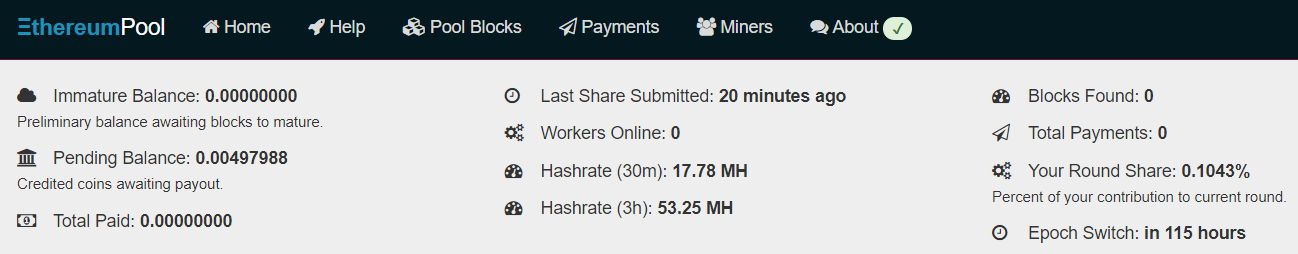 Pise na stranici gdje unosis ETH adresu kad provjeravas workere i ostalo |