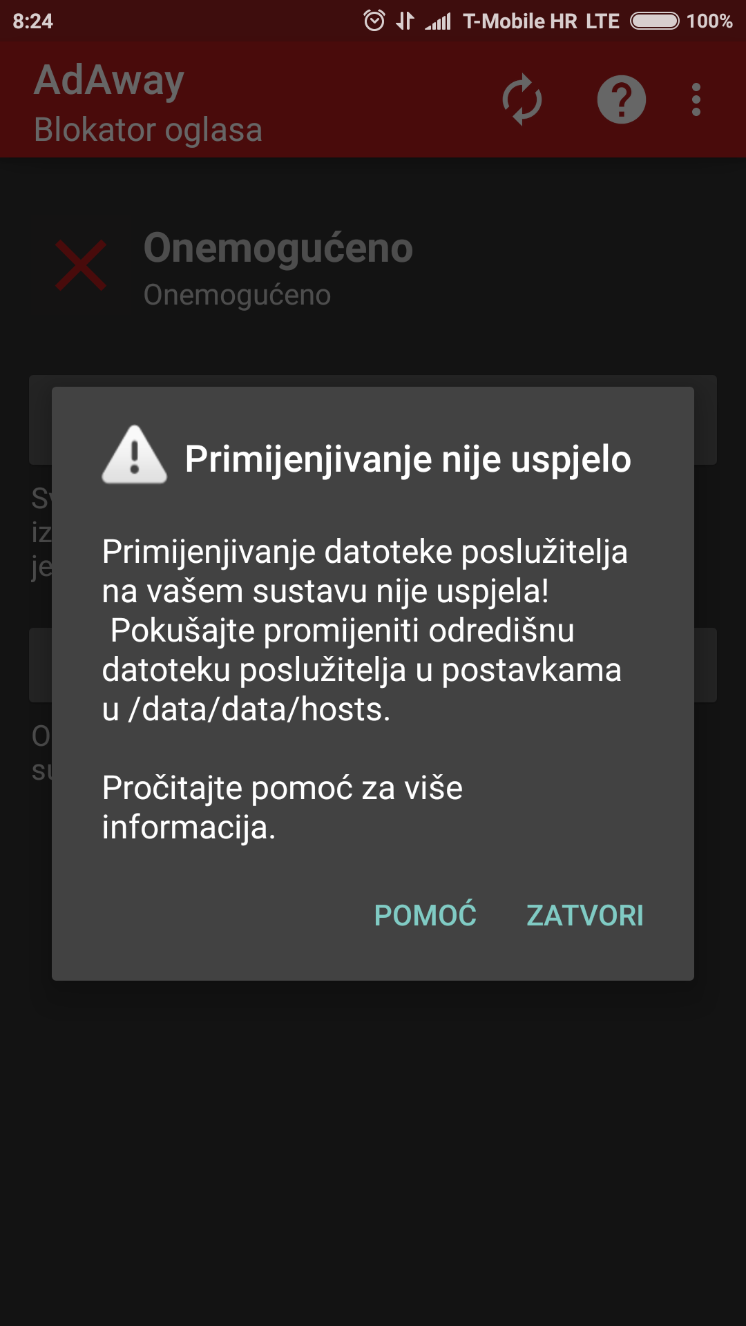 Pozdrav Adaway pomoć Molio bih malu pomoć, imam Xiaomi RN2, Miui by xiaomi.eu 9.2.3 stabile, verzija Adaway-a verzija 3.3(61), i u zadnje vrijeme neće raditi pokrenem ažuriranje i primjenjivanje datoteka za blokiranje oglasa i prvo izbaci ekrane sa porukama kao na slikama. Vjerojatno treba nekaj poštelat a ja neznam kako, Svaka pomoć dobro došla Hvala |
