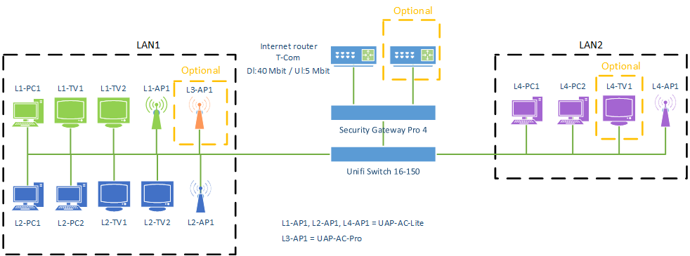Ovisno o cijeni, možda bolje neki Mikrotik router pa 2 x neki SW (preporuka za UniFi switcheve, pogotovo ako uzmeđ POE, imaju 24V poe i POE+, tako da mogu i druge AP-ove napajati). Što se AP-ova tiče, nemaš neke velike razlike između, Lite, LR i Pro. Lite je sasvim dovoljan za takvu mrežu doma, Pro je isti LR samo može biti vanjski i unutarnji. Jedino što možeš pokriti i vrt s tim PRO ako ga staviš vani, pa će eventualno pokrivati i apartmane (staklo ih dosta zeza, ako je duplo staklo, gotovo je nemoguće signal dobiti). Ne znam kakva je sad razlika između Lite i LR, ali LR ima prednost kod mene. Više uređaja istovremeno, veći raspon brzina i frekvencija itd. Što se LAN1 tiče, ovisno što će se raditi. Ako će ti korisnici u apartmanima raditi nešto službeno, možda sve u jednom subnetu nije tako pametno. Ali ako je za korištenje u neke privatne svrhe, tipa igranje igara, surfanje itd. nema potrebe za nečim drugim. A ako bude potrebe, napraviš neki VPN na mikrotiku i na miru si. |