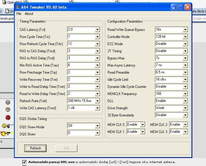 Primjetio sam da mi matična radi overvoltage memorije, chipseta i procesora kad je namješteno na auto. Voltaža procesora je 1.5, memorije 2.7, a chipseta 1.7. Matična je Epox 9npa+ Ultra. Vratio bi to na normalne vrijednosti a nisam 100% siguran jesu li za proc 1.4, za mem 2.5 a za chip 1.5. Inače ništa se ne grije previše ali me smeta kad nije ništa clockano. Sad pitanje za clockanje: Imam SuperTalent 3200 2x512 ali ne mogu ih nikako natjerati preko 400 MHz, čitao sam da se ova memorija ne clocka baš najbolje nego da zato ima niske latencije ali je li se baš toliko loše clocka ili ja negdje griješim? Postavke latencija sam stavio na auto. Ako je tome tako moram spuštat brzinu rama pošto želim clockat procesor. Međutim kako ploča ima izbor samo 100, 133, 166, 200 MHz za ram želio bi nakon clockanja procesora dobiti brzinu rama od 400 MHz a ne znam formulu po kojoj se množi brzina FSB-a da bi se dobila brzina memorije. Negdje sam čitao da postoji neki kalkulator za taj izračun ali više se ne sjećam. Zna li netko tu formulu ili da mi pošalje link na taj program. |