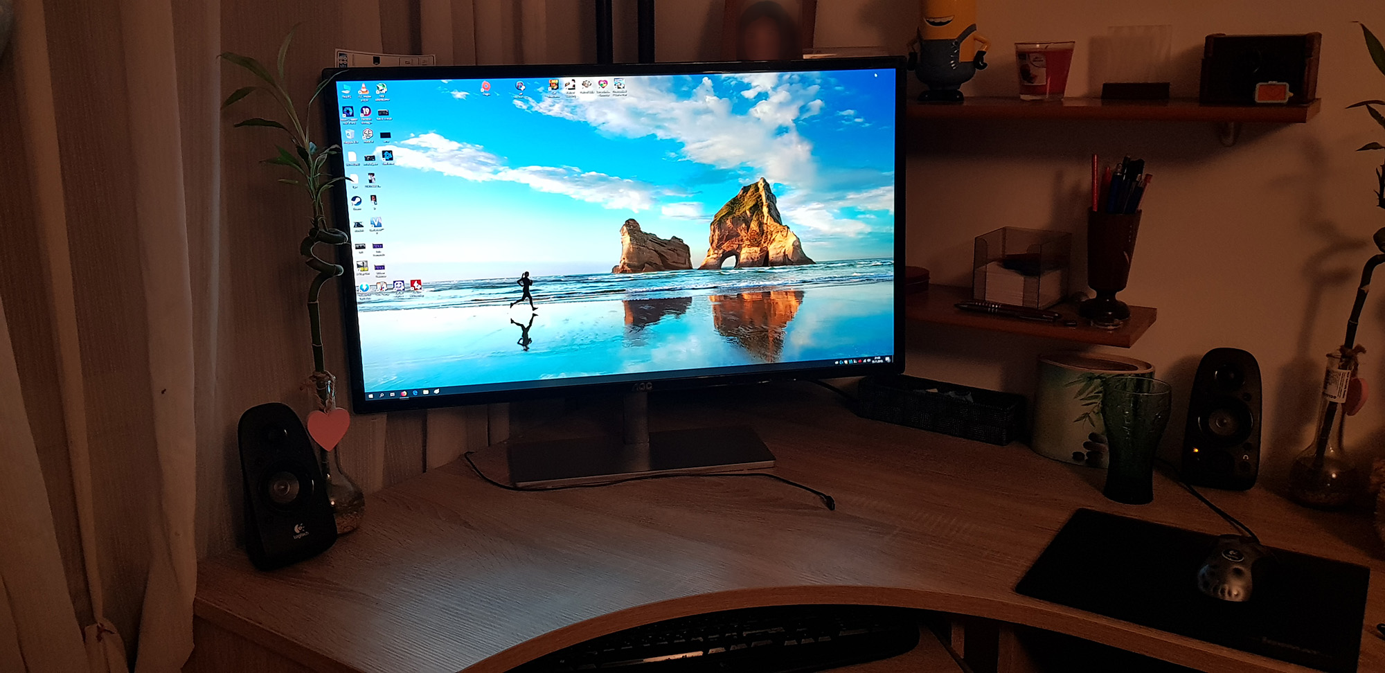 Morao sam si maknut ono povišenje koje imam na stolu, jer je previsoko mi bio monitor, ali sad je savršeno, daleko veći gušt je igrat na ovako velikom ekranu
