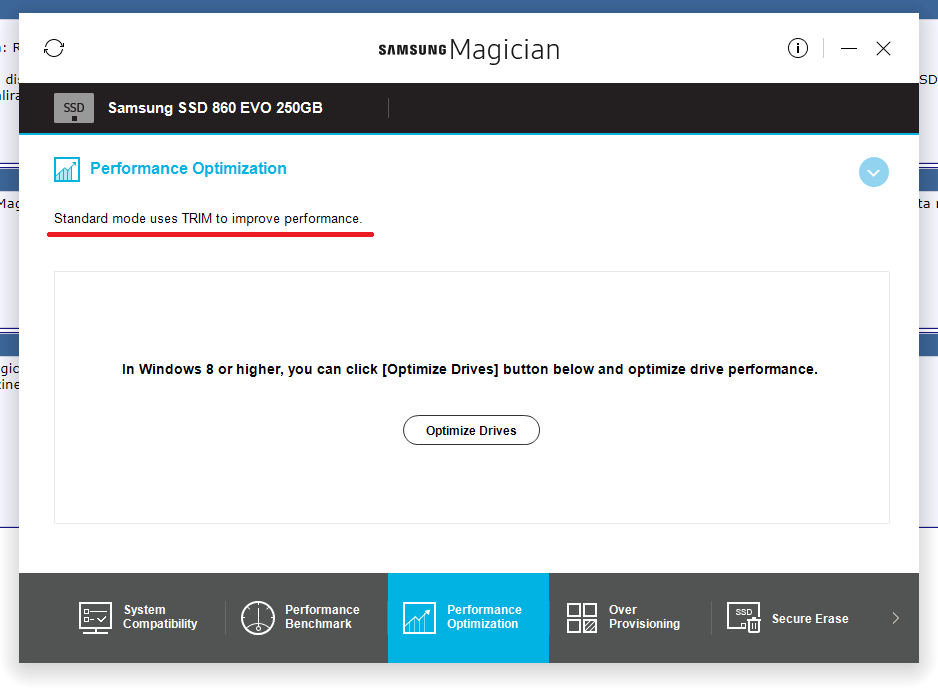 Kad je "spojen" kroz raid nije ahci pa se magician buni / upozorava. Treba(lo) je napraviti usporedne testove brzine transfera i dali radi trim / garbage collection, ovo zadnje je važnije. |