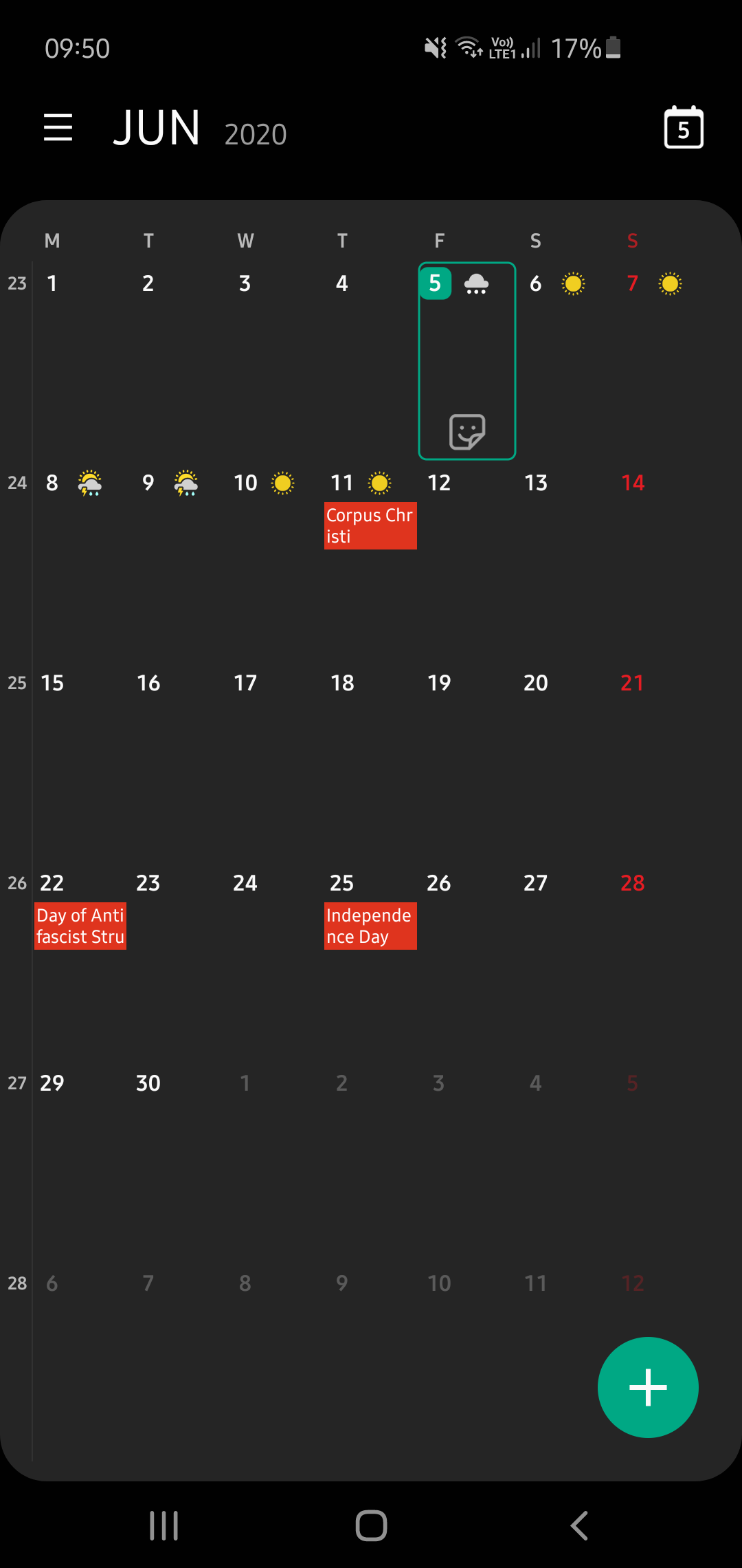 ![]() probo sam prvo clear cache calendar aplikacije na mobitelu, pa clear data, bez uspjeha. na desktop browseru sam removao (unsubsribe) holidays in croatia, pa u mobitelu skroz na dnu menija u kalendaru napravio sync. nakon toga sam ponovo dodao isti kalendar i opet sync u aplikaciji na mobu i sad mi prikazuje i tijelovo i dan antifa... |