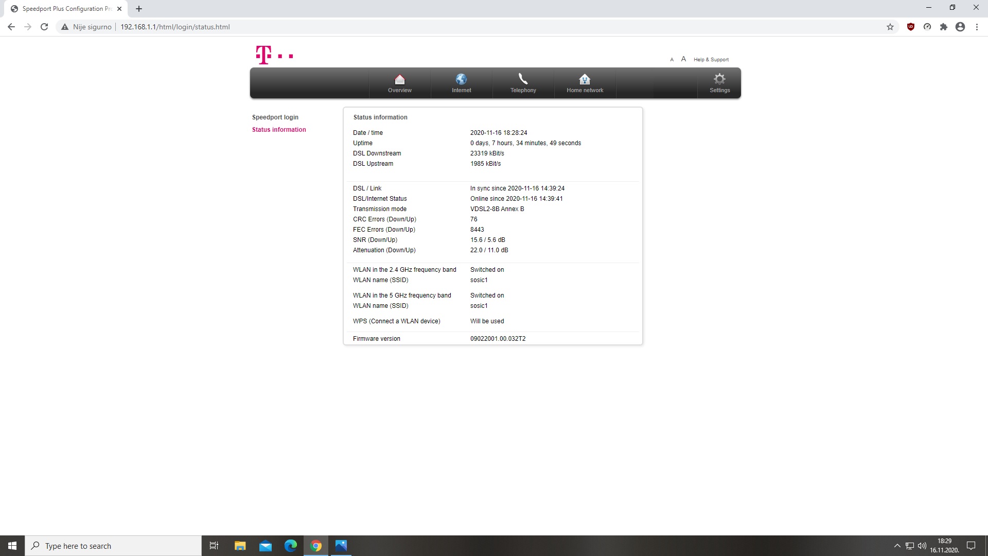 VDSL Training Status: Showtime Mode: VDSL2 Annex B VDSL Profile: Profile 17a Traffic Type: PTM Mode Link Uptime: 2 days: 23 hours: 3 minutes ============================================================================ VDSL Port Details Upstream Downstream Line Rate: 4.154 Mbps 33.507 Mbps Actual Net Data Rate: 4.096 Mbps 33.442 Mbps Trellis Coding: ON ON SNR Margin: 20.3 dB 7.9 dB Actual Delay: 1 ms 9 ms Transmit Power: 7.5 dBm 14.2 dBm Receive Power: -11.8 dBm -3.8 dBm Actual INP: 0.5 symbols 3.0 symbols Total Attenuation: 19.4 dB 18.0 dB Attainable Net Data Rate: 16.188 Mbps 40.537 Mbps ============================================================================ VDSL Band Status U0 U1 U2 U3 D1 D2 D3 Line Attenuation(dB): 8.5 30.4 46.6 N/A 17.1 37.4 56.7 Signal Attenuation(dB): 8.5 30.0 46.7 N/A 16.6 37.1 56.8 SNR Margin(dB): 21.0 20.3 20.0 N/A 7.8 7.9 8.6 Na ovome imam sad 16/1.5 jel može to malo brže i u čemu je baza? ISKON u pitanju