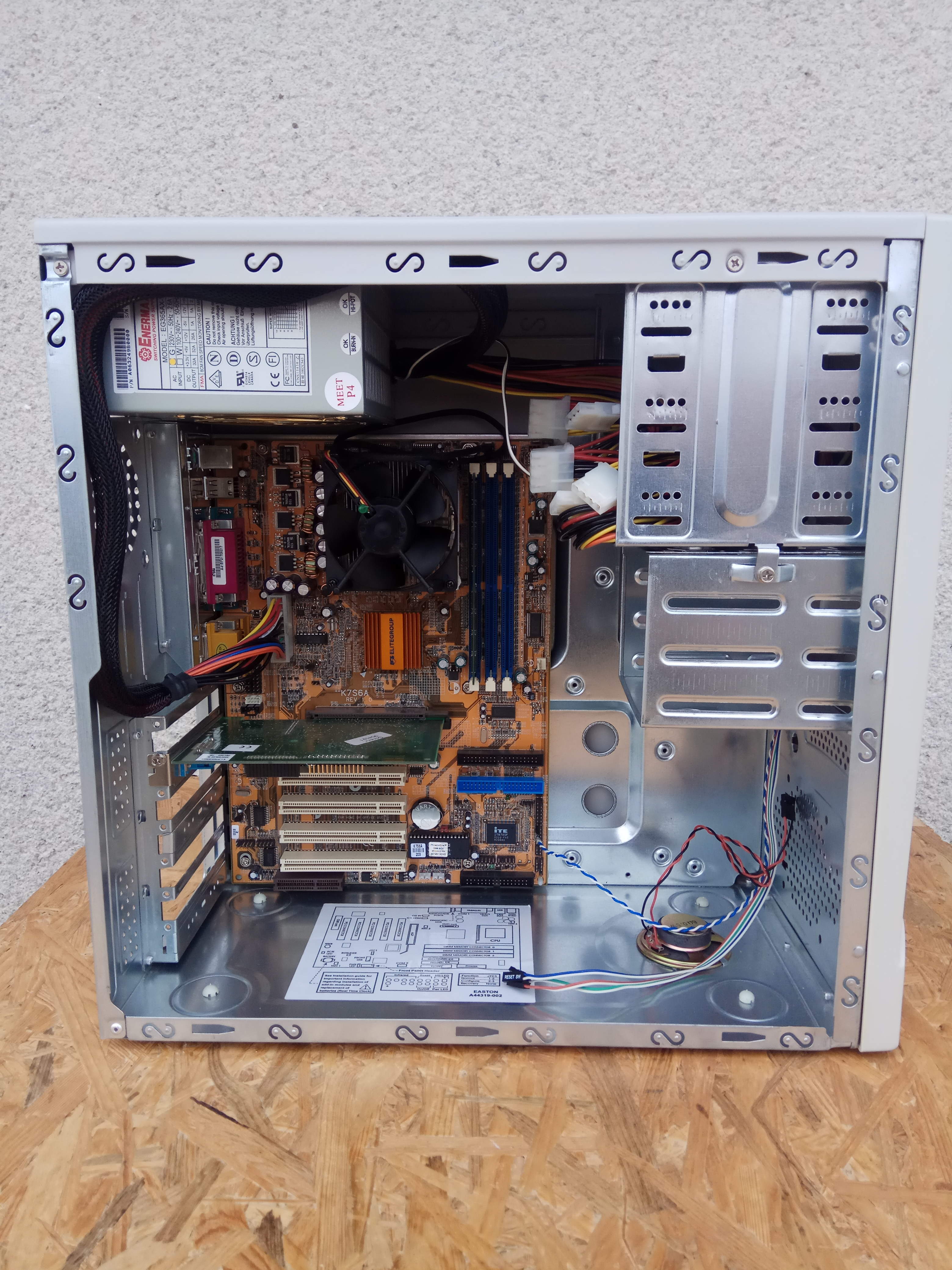 Ja sam provizorno testirao Enermaxa s Geode socket A konfom namijenjenom za Voodoo 3 (prve dvije slike u attachu). Ploča kuži procesor kao "AMD Mobile Athlon 4" i hvata samo prvi dostupan množitelj (6x). Što znači da proc radi po defoltu na 800Mhz umjesto 1400. Vidjet ću da li se što mijenja driverima (AMD PowerNow!) jednom kada instaliram OS. Druga opcija je ručno podesiti željeni množitelj kroz Crystal CPU Mark. BIOS nema opcije naštimavanja množitelja. Mogu forsirati jumperom, ali je onda CPU prepoznat kao "unknown", što ne želim. U krajnjem slučaju ostavim ga na 800 i još smanjim voltažu. Hladnjak sam stavio neki prastari Titan (fini komad ekstrudiranog aluminija) i na njega Arctic F8 koji je nečujan na distancerima. Grafa je provizorno Matrox Productiva G100 od Trekkie-a koja kaže da radi na AGP 1x .Case je originalno od mog Pentiuma III 1Ghz iz 2001. Drugi case u attachu sam našao nedavno. Plastika iznad gornjeg CD-ROMa je bila napukla pa sam je zakeljio Loctiteom. Dobro je uhvatilo. Još nisam siguran šta ću staviti unutra. Jedna opcija je Tualatin, ako ploča bude funkcionalna nakon zamjene kondenzatora. Druga opcija je "retro-sleeper" s Asrock 775i65g, Pentiumom E5800 i nekom DX7/DX8 grafom za dual boot Win98/XP. Također sam refurbishao jedan IDE DVD-RW koji je već bio spremljen za bacanje (Pioneer DVR-115DBK). Totalno sam ga otprašio, oprao plastike, očistio leću i podmazao sve slajdere i zupčanike silikonsko-teflonskom mašću. Radi ... bar ono što sam probao. Ima problem s nekim Traxdatama, ali Verbatime je sve uredno pročitao. Čak i dosta ogrebane. Prilično je tih za jednu pržu .Zadnje izmijenjeno od: stef. 02.02.2021. u 16:53. |