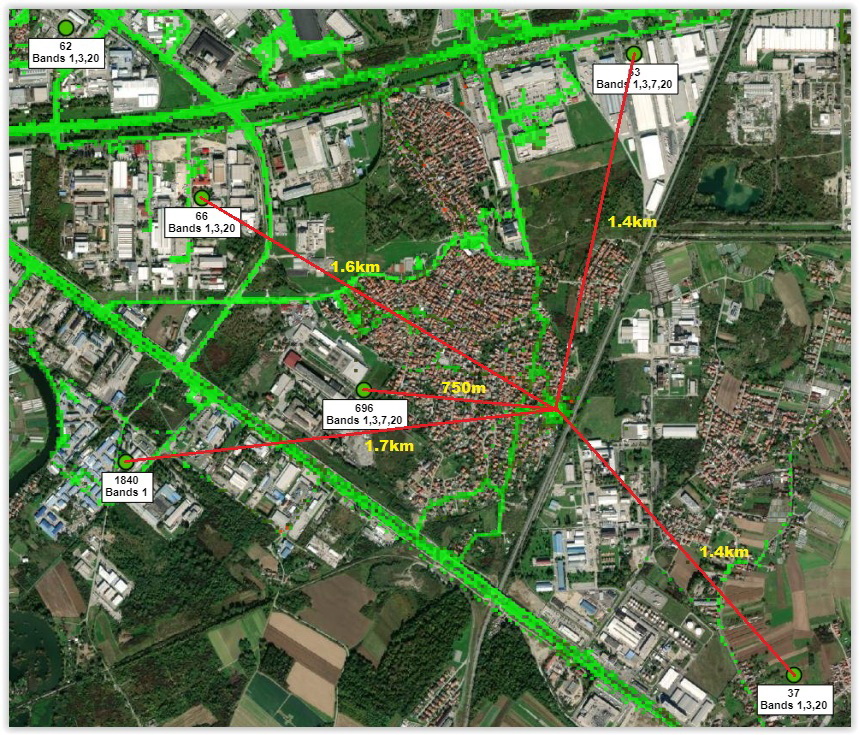 750589 isto 5G endc yes band 7, i drugi toranj odma do nema, ja se na njega spajam doma sa ruterom al brzine nis posebno |