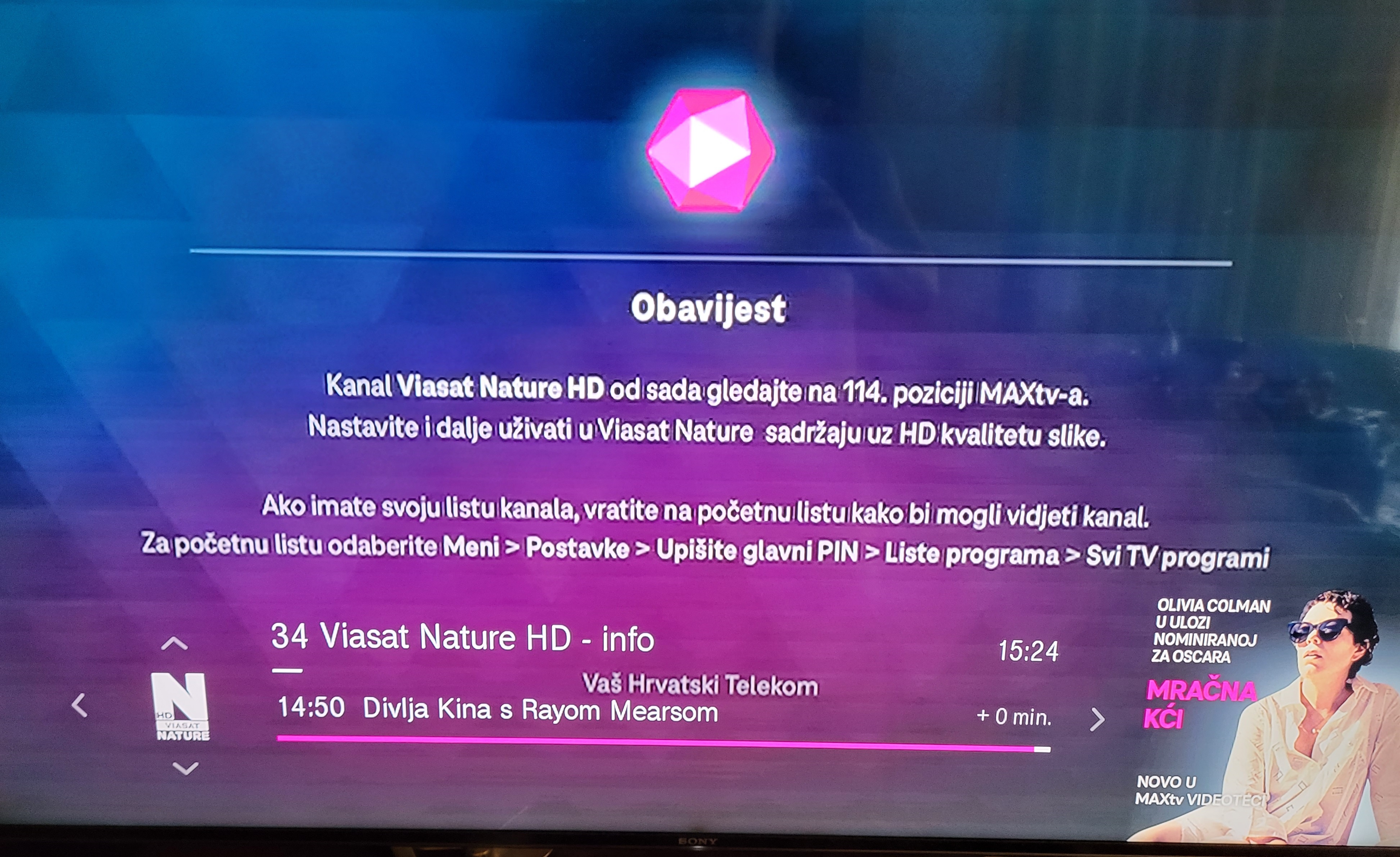 Možda je već bilo u temi, ali nisam našao. Da li moraš imati neku dodatnu plaćenu uslugu/paket da bi ti svi kanali bili u HD kvaliteti (naravno oni koje tcom može isporučiti/isporučuje u HD kvaliteti)? Pitam to zbog toga što su mi pred jedno 2 mjeseca došle obavijesti za kanale bbc earth hd, viasat nature hd, viasat history hd i viasat explorer hd. Da se prebacuje pozicija kanala i da ću na novoj poziciji moći gledati navedene kanale u hd kvaliteti. Kada sam našao navedene kanale na novim pozicijama bio je maknut HD sa navedenih kanala (makar u samom nazivu kanala)?! E sad, nisam više siguran da li se ti kanali više vrte u HD kvaliteti ili ne?! Da li ima način za provjeriti da li se kanal stvarno vrti u HD kvaliteti? Imam sony bravia tv. Da li su i nekima od vas ove obavijesti dolazile? Primjeri u privitku. Hvala na savjetima ![]() P.S. Imam fiber optiku 200/100 mbit/s brzinu, tako da to ne bi trebal biti problem što se tiče HD-a (da ne bi netko mislil da imam bakar paricu) Zadnje izmijenjeno od: Mogy. 05.07.2022. u 22:40. |