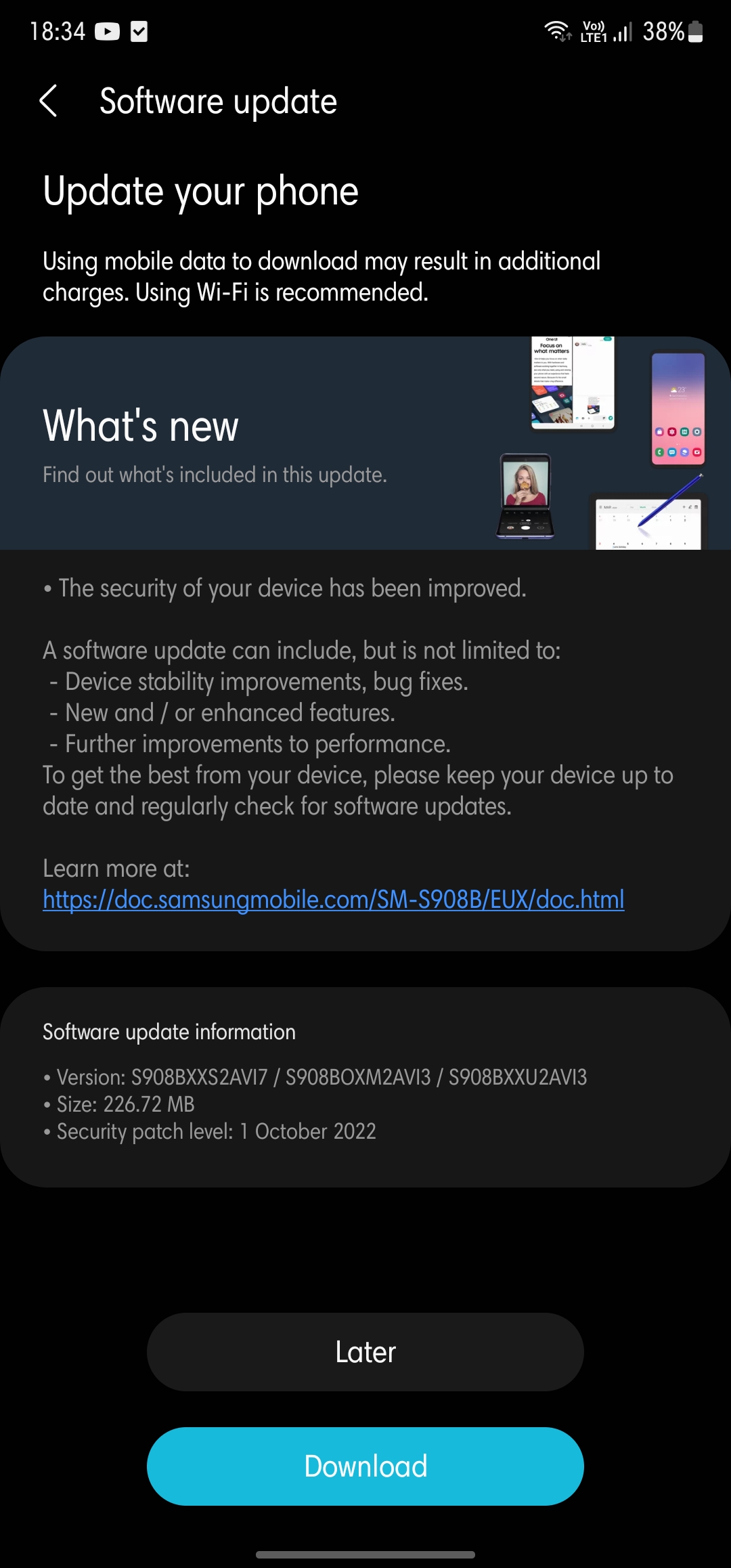 Upravo sletio novi update. Na prvi pogled izgleda kao još jedan security patch ali zakleo bi se da su animacije nekako drugačije, bar na mom S22U...