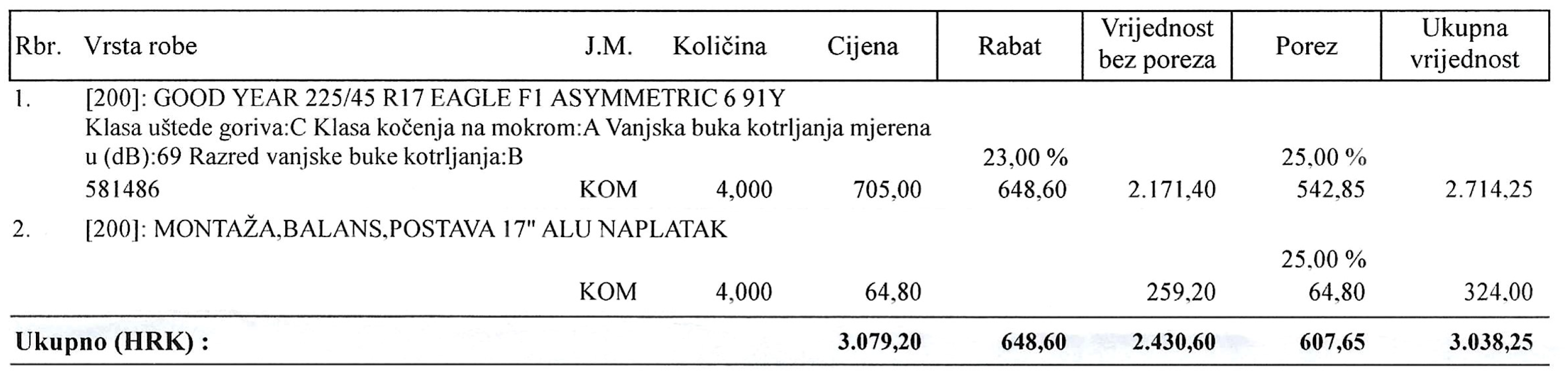 Meni ne zvuci puno previse od standarda. Evo auto antonio Split, balansiranje i ugradnja guma po komadu: 68 kn 15” 83 kn 16” 91 kn 17-18” 106 kn 19-20” 121 kn 21-26” Sent from my iPhone using Tapatalk |