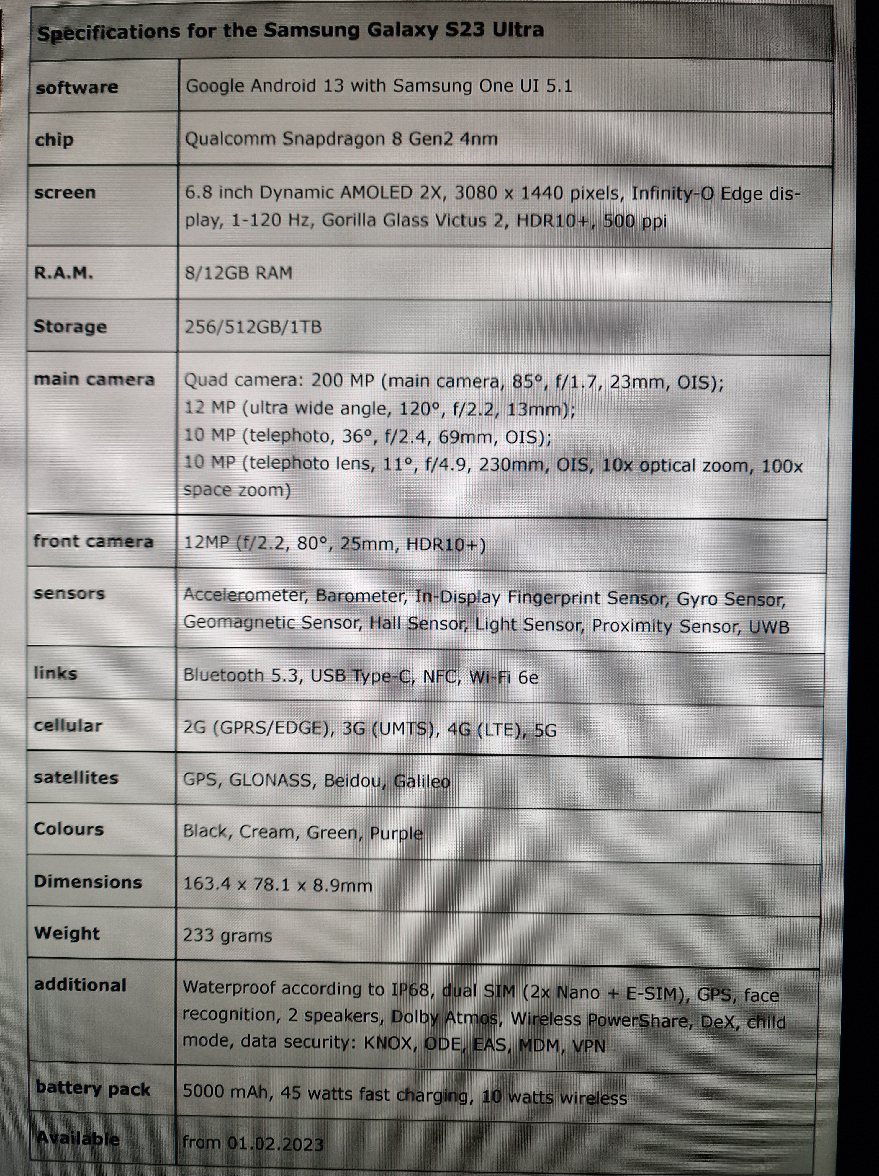 Procurile cijene S23 serije u USA. btw, +(DM2)/U(DM3) dolaze sa 256Gb prostora https://i.redd.it/5ynpivljzwca1.jpg "Additionally, the source claims that those who pre-book the S23/S23+ from individual retailers in Germany will have the option to buy the phone with double storage for the same price. So if you purchase the Galaxy S23's 128GB variant, you will get the 256GB model without spending extra. And if you purchase the top-end model, you have to pay the price of the "next smaller version." IZVOR: GSMA