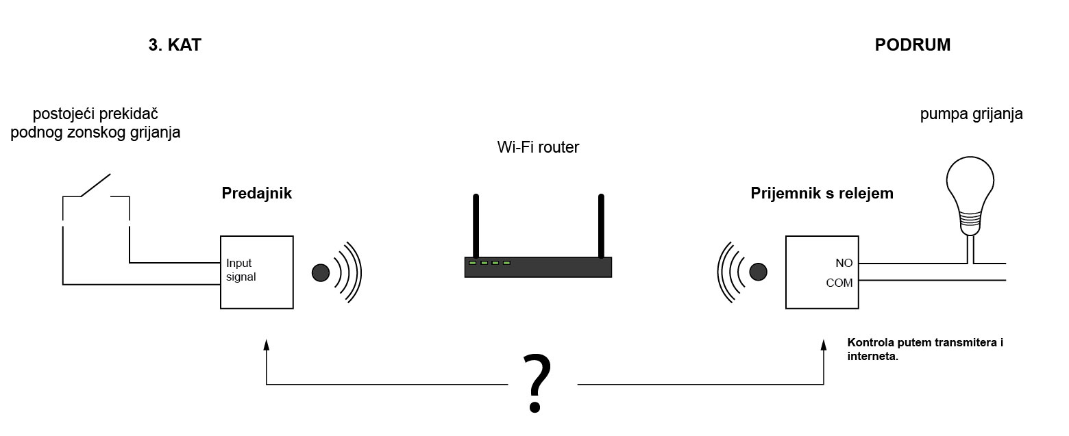 Naime, ne treba mi prekidač kojega će paliti ljudska ruka, već transmiter na kojega ću spojiti postojeći bezpotencijalni kontakt – prekidač, s relejne letve. Dakle trebam transmiter koji ima ulaz kojeg sluša i prema njegovom zahtjevu šalje signal preko Wi-Fi mreže. Uvijek je opcija da kupim neki jeftini prekidač i da ga sam prenamijenim, no je li moguće da na tržištu ne postoji gotovo rješenje?