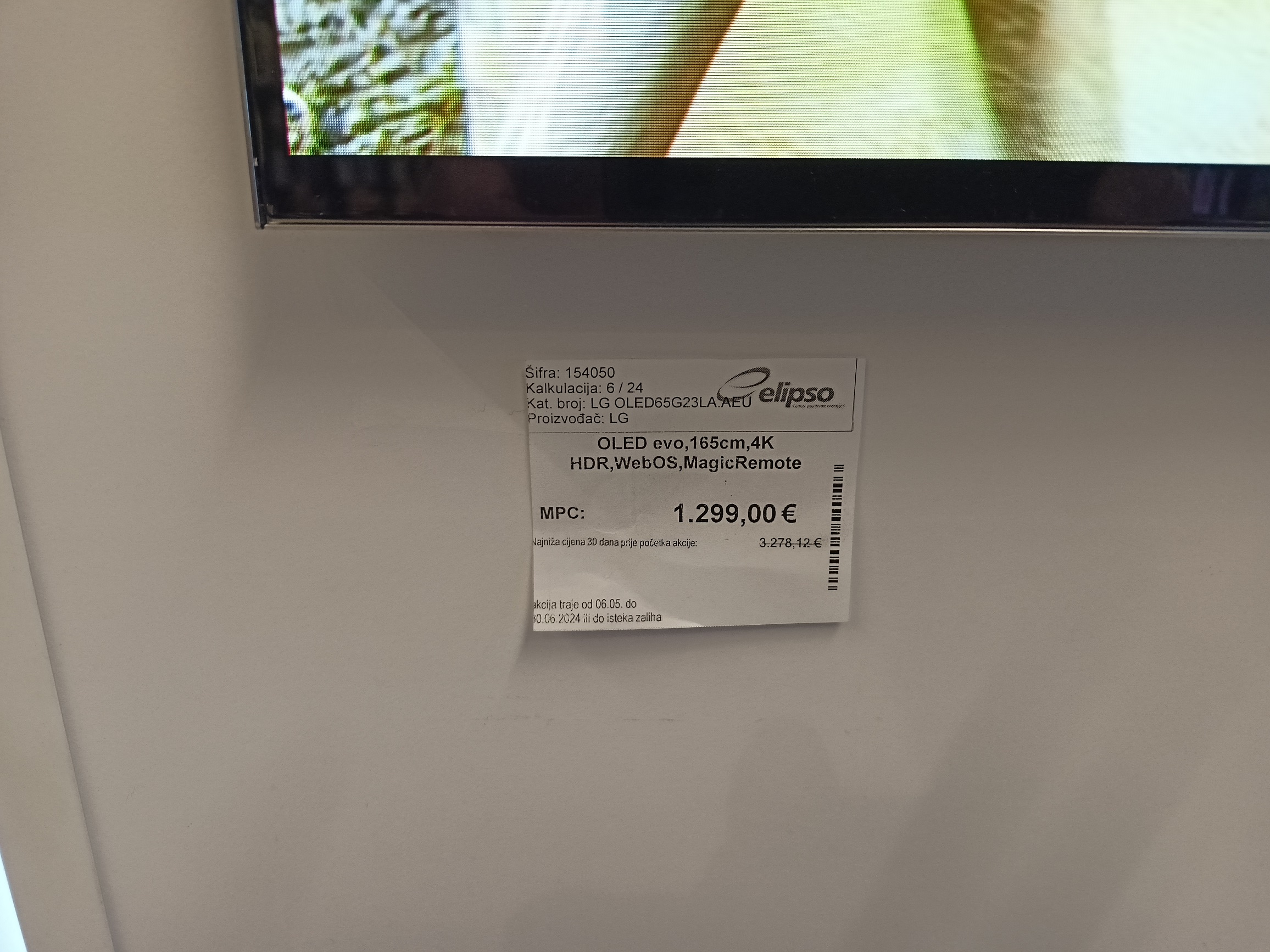 Šta nije ovo jako dobra cijena? Gledam da li negdje piše izložbeni ali nije. https://www.elipso.hr/audio__video/t....net.hr_cjenik LG OLED55G23LA za 1099EUR. |