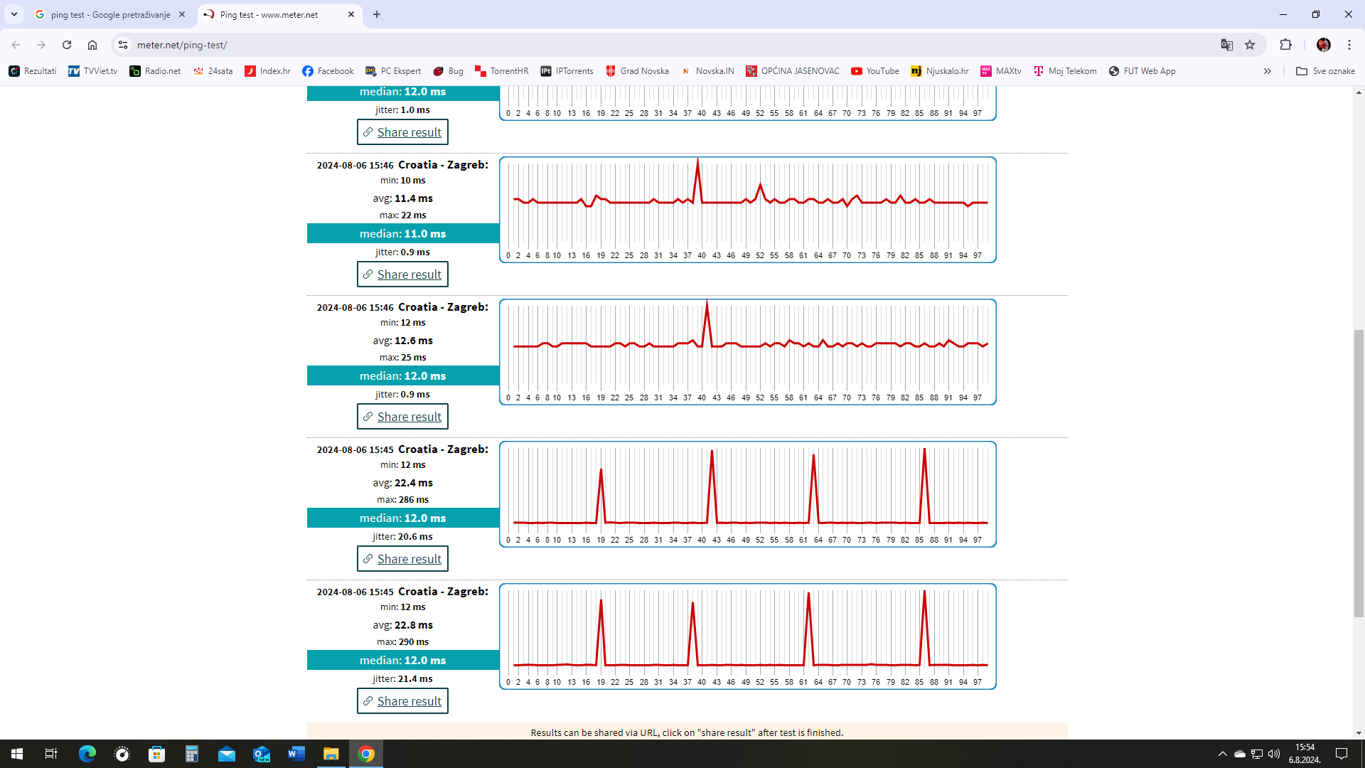 Gornja dva rezultata su jedan tv na maxtvu s redovnim programom, donji su kad je na drugom upaljen film unazad od prije 3 dana. Znači ti spajkovi su toliko redovni i toliko disejblaju sve ostale uređaje na internetu do neupotrebljivosti koliko sve trza ili dugo otvara, a rekoh, online gejmanje da ne spominjem, sve moguće lampice ingame za ping i vezu se popale.
