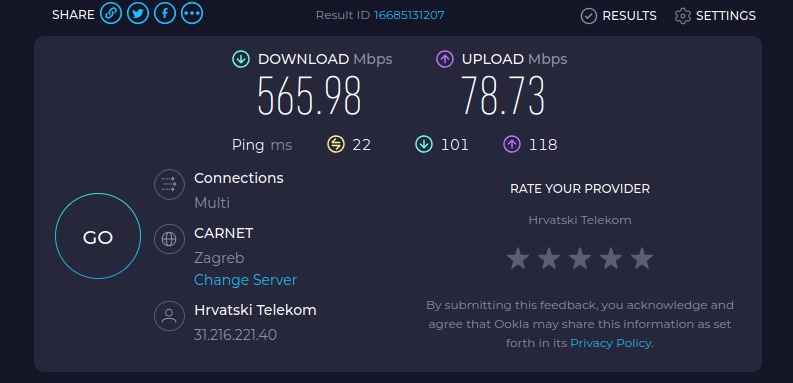 Sad radi normalno, na mobitelu sam na bonbon i spaja mi se na isti toranj, i tu mi je povlačilo oko 500Mbps, na zte nikako više od 50-80Mbps, i sada odjednom ovako https://www.speedtest.net/result/16681786583.png , sve sam bio na tvorničke postavke stavio i nije htjelo i sada od jednom eto radi.