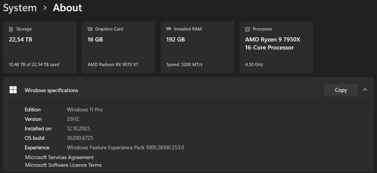 Citam ovu temu i tak sam sretan kaj na lapu iz potpisa vrtim Server2025 pa ak neko hoce "ciste" winse koji se ne potrgaju odma dok izadje update probajte. Sent from my 2201116SG using Tapatalk